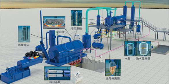 بالنسبة لمصنع الانحلال الحراري لإعادة تدوير نفايات الإطارات فهو يشمل بشكل أساسي نظام المعالجة المسبقة للإطارات، وجهاز تغذية الإطارات، ومفاعل الانحلال الحراري للإطارات، ونظام تبريد الغاز النفطي، ونظام تنظيف الغاز الخلفي، ونظام تنظيف الدخان، وجهاز تفريغ أسود الكربون، وما إلى ذلك.