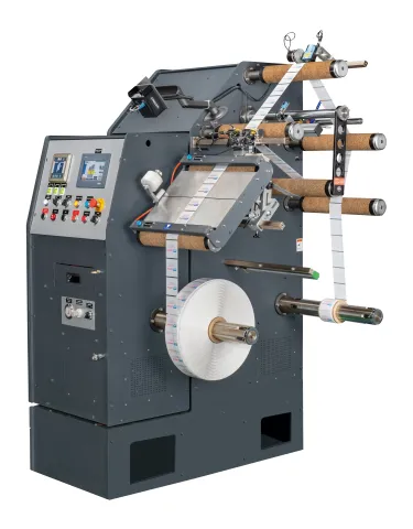 صُممت هذه الآلة عالية السرعة لفحص وإعادة لف لفائف الملصقات الانكماشية والكشف عن أي عيوب فيها. وهي مزوّدة بموجّهات حواف لتحسين عملية اللفّ. يمكن ضبط مقدار ونوع التذبذب (جيبي أو مربّع) عبر واجهة المستخدم الرسومية. كما توفر خيارات للكشف عن الوصلات، والعلامات، والفقاعات لضمان جودة الملصقات قبل استخدامها.